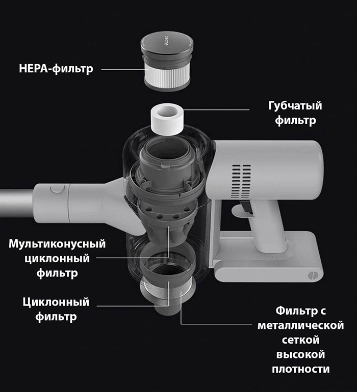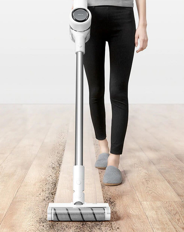 Ручной беспроводной пылесос Dreame V10 Boreas Vacuum Cleaner. Устройство получило уникальный мотор. Ротор двигателя достигает 100 тысяч оборотов в минуту, что позволяет Dreame V10 всасывать мусор с мощностью 140 AW и 22000 Па. Чтобы достичь таких показателей, в компании Xiaomi разработали особую каркасную систему, которая помогает компенсировать любую возможную возникающую центробежную силу. Поскольку пылесос развивает высокую мощность, для предотвращения перегрева двигателя, ему требуется охладительная система.