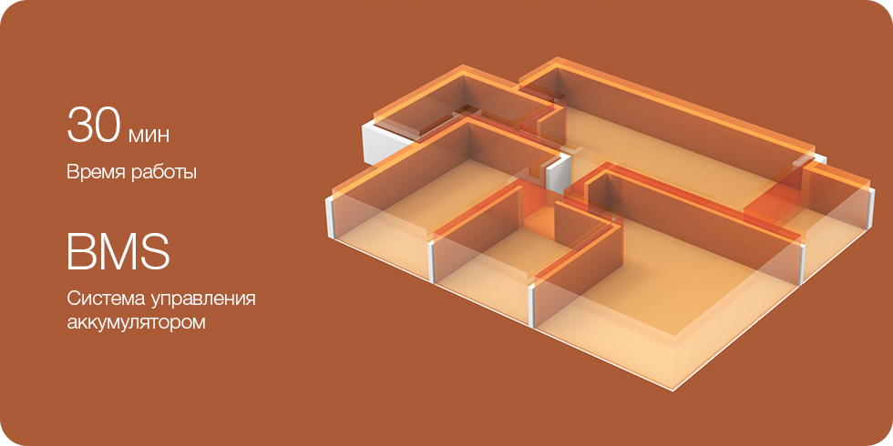 Умная система чутко следит за состоянием каждой ячейки аккумулятора, сводя к минимуму их износ и потерю мощности, а также увеличивая срок службы аккумулятора. Одного полного заряда пылесосу хватит на полчаса работы - а это чистота в гостиной, спальне, кабинете и других комнатах как в большом доме, так и в квартире.