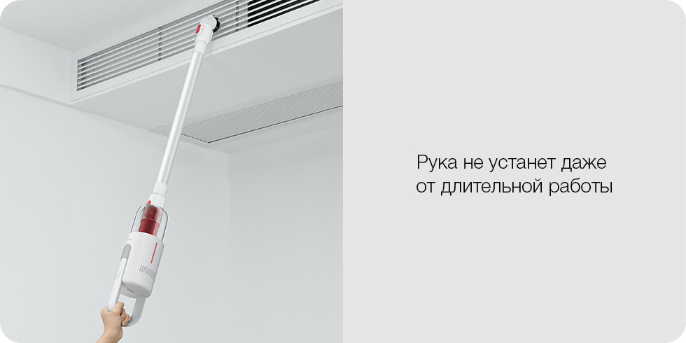 Когда душа требует отдыха, силы не хочется тратить даже на наведение порядка. Поэтому пылесос Deerma был наделен компактной, но мощной начинкой, обеспечивающей мощное всасывание при весе двигателя менее 1 кг, так что самые нежные ручки не устанут от него, например, при чистке потолка.