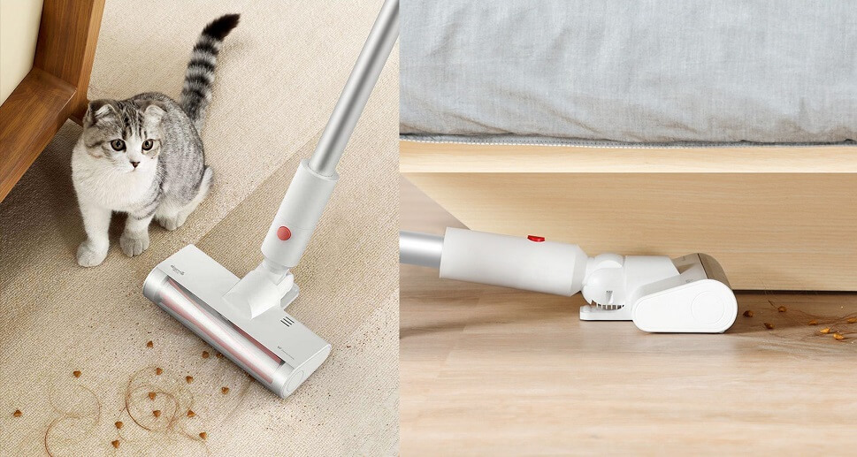 Беспроводная модель выпущенная брендом Сяоми позволяет качественно пропылесосить любое напольное покрытие, не путаясь в проводах. Легкий вес прибора обеспечивает комфорт даже при длительной уборке.