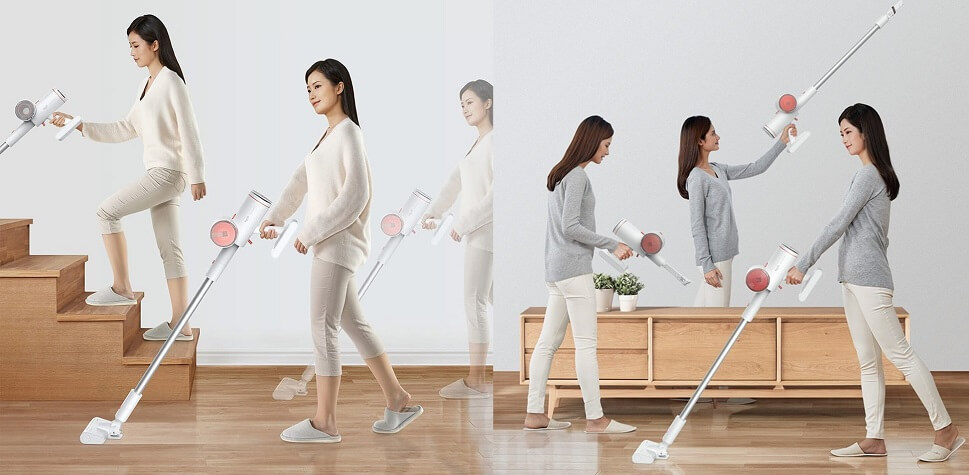 Сбалансированный беспроводной пылесос продается в стильном белом цвете. Он выполнен из двух материалов – ударопрочного пластика и алюминия. Благодаря матовому покрытию пластиковых вставок, на поверхности не собирается пыль, не остаются отпечатки пальцев.Разместив двигатель, АКБ и другие компоненты в подходящем месте, разработчики Сяоми добились смещения центра тяжести, более комфортного удержания. Рука пользователя не устает даже при длительной работе. Дополнен пылесос эргономичной ручкой, которая наклоняется под углом 60 градусов. Она снижает нагрузку во время уборки, позволяя добраться в труднодоступные места.