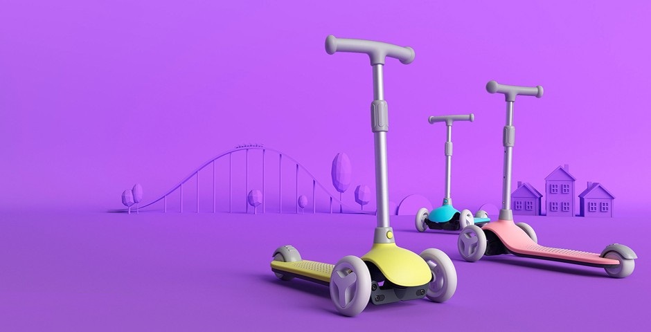 Специально для детей самокат Mitu Baby Scooter предлагается в трех пастельных цветах - розовом, голубом и жёлтом. При этом подножку можно в любой момент поменять на понравившуюся.