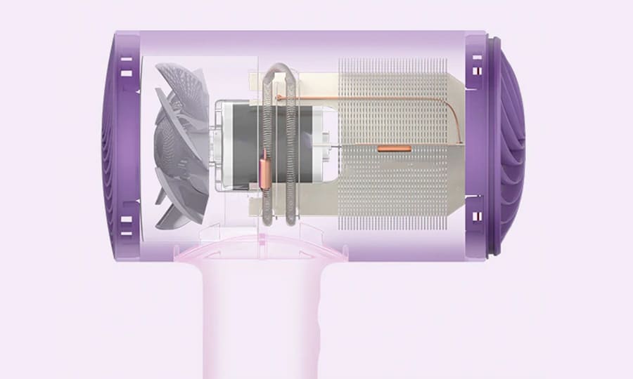 Создатели оснастили компактный фен Xiaomi Soocas Hair Dryer H5 специальными сопла, что позволило добиться сильного и направленного воздушного потока. В основе устройства лежит высокопроизводительный электрический мотор и модернизированная крыльчатка. Заявленная потребляемая мощность 1800 Вт, при этом конический раструб фена не перегревается, а предусмотренные температурные режимы не превышают 57 градусов по Цельсию.