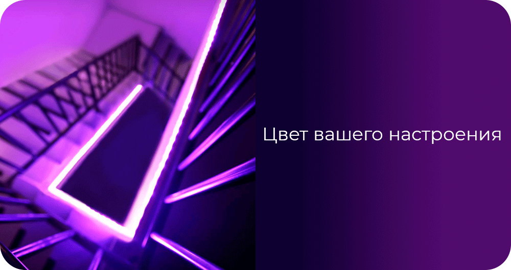 Светодиодная лента – прекрасный способ выразить свои чувства. Используйте её, чтобы настроить домашнее освещение под цвет Вашего настроения, будь то спокойный синий, теплый желтый и др. Свет без ламп и плафонов, идущий из укромных мест, изменит атмосферу в помещении, словно по волшебству.